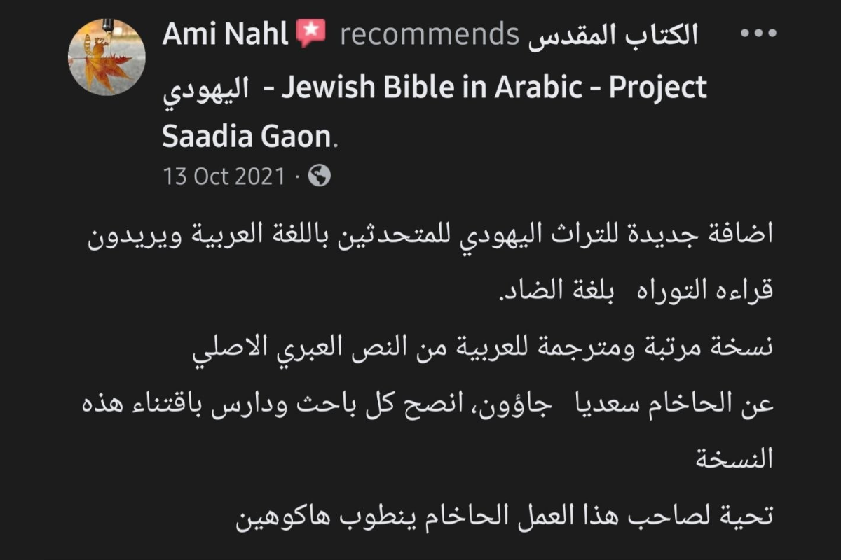 ב. נוסח מלא של כתב היד בערבית-יהודית מנוקד בניקוד עברי חדיש המסייע רבות לקריאתו.